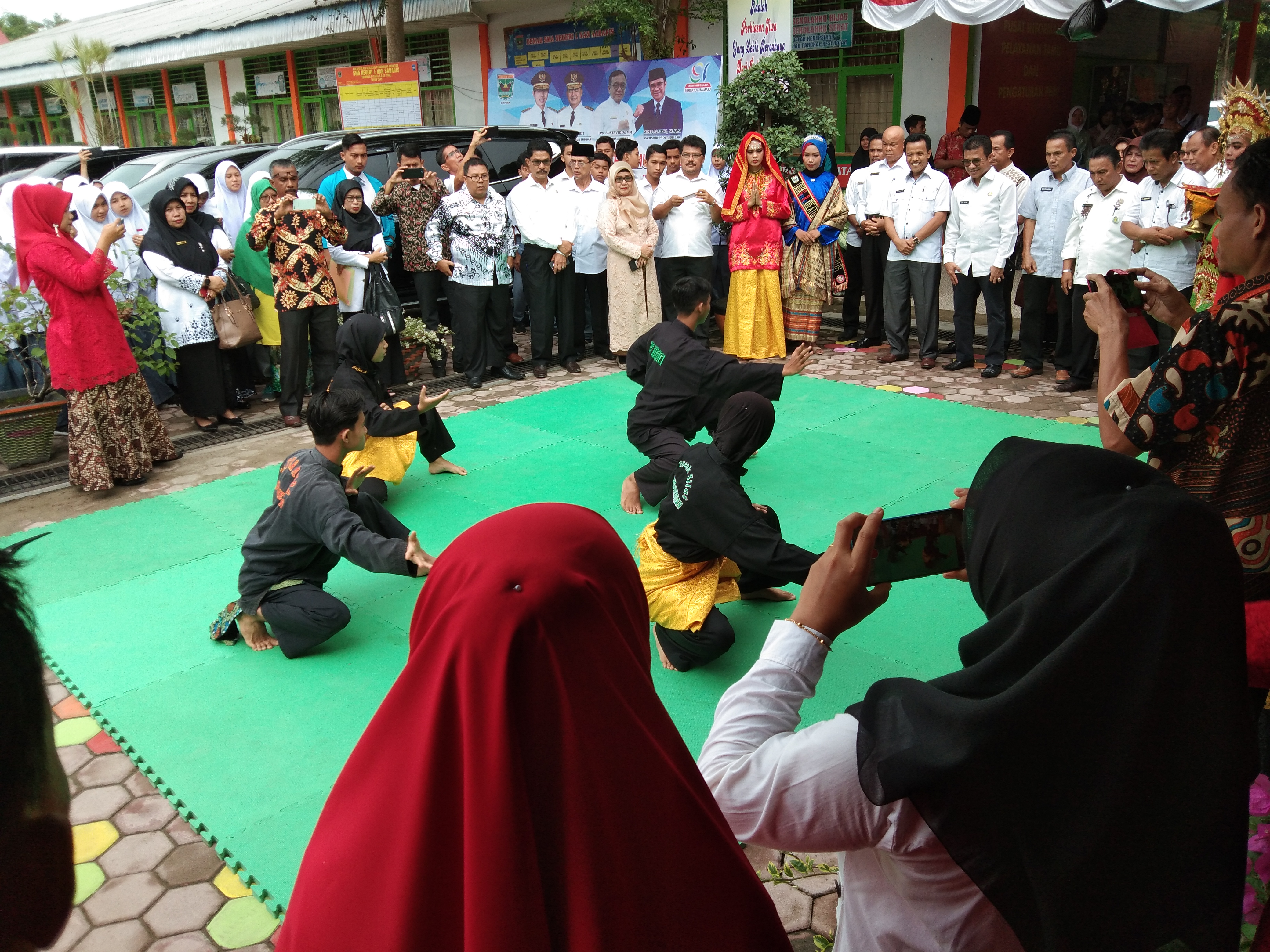 Penampilan Pencak Silat dari siswa SMAN 1 Nan Sabaris | Foto bersama Bapak Adib Alfikri, Bapak Suindra Cabdin wil 2 bersma dengan Guru-guru SMAN 1 Nan Sabaris |